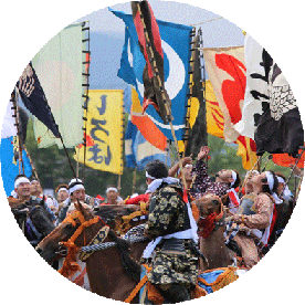這是福島縣濱通北部的3個神社舉行的祭祀活動,被指定為了國家重要無形民俗文化財。每年7月底的週六、週日及週一,歷時三天,身披甲冑的騎馬武士演繹著戰國時代畫卷。亮點是第二天在雲雀原祭祀場地舉行的甲冑賽馬與神旗爭奪戰。以英勇身姿疾馳的騎馬武士震撼全場。