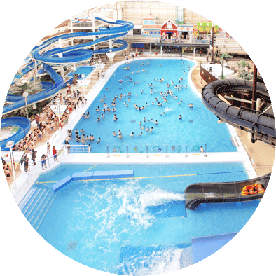 | 收費 | 夏威夷式溫泉度假村門票/成人3,500日圓,小學生2,200日圓,幼兒1,600日圓。飯店住宿費用(1晚2餐)因設施而有所不同 |