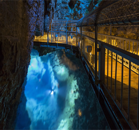 被列為日本三大鐘乳洞之一,並被指定為了國家天然紀念物。洞內總長已知部分為3,600m。其中向大眾開放700m。悠長的歲月所孕育出的鐘乳石及透明度世界鮮有的藍色地底湖等,可感受到地球的神秘。途中也有呈心形的空間。