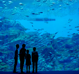 這是一個展示約800種13萬個生物的水族館。在貫穿2~4樓的大水槽中,可一邊走過隧道一邊觀賞斑點莎腦魚及鰹魚富有震撼力的游動。除了重現熱帶亞洲的專區、北海獅等大型哺乳類、深海生物的展示專區外,展示花園鰻等的「珊瑚礁之海」專區也很受歡迎。