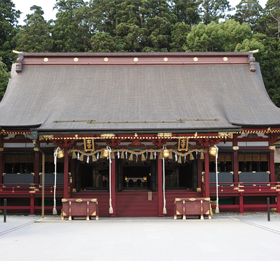 作為東北開拓與產業開發大神創建於842年,現在供奉著衣食住的神仙們。深受平泉的奧州藤原家、仙台藩主伊達家等重要人物的崇敬。境內除了神殿及唐門外,還有全國稀有的馬的專門博物館「馬事博物館」,展示著馬具、雕刻等與馬相關的歷史資料。