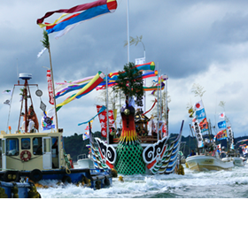 乘坐鋪有榻榻米、洋溢著日本風情的屋形船遊覽八戶港。漁港及工業港等時刻變化的海港風景自不必說,在蕪島附近還可享受給黑尾鷗餵食的樂趣。10人及以上的團隊帶餐飲的行程很受歡迎。能夠欣賞到八戶港的夜景,品嚐使用當地新鮮魚貝類及蔬菜製作的料理與地產酒。也有僅乘船的行程。