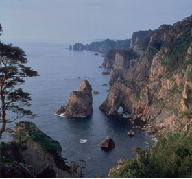 這是高達200m的斷崖與因怒濤侵蝕而形成的大小各異的奇岩、怪石及洞窟綿延約8km的動態海岸線。不僅是晴朗的日子,斷崖隱蔽在霧靄中的雨天時的景色也美得令人驚歎。從展望台到斷崖正下方,有736級台階,能夠下到海岸邊。